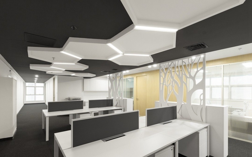 辦公室裝修不能片面強調(diào)造型、視覺效果,因為這是一個工作的地方,尤其是容納多數(shù)員工的辦公區(qū)域,更應該考慮實際的使用需求。給員工一定的隔斷、遮擋物等,即能夠適當保護員工的私隱,同事也可以讓他們在相對安靜的環(huán)境里工作。當然同時要確保相互之間能進行方便的溝通,必要的通道應該保持暢通,讓大家可以共享辦公室中的公共設(shè)備。