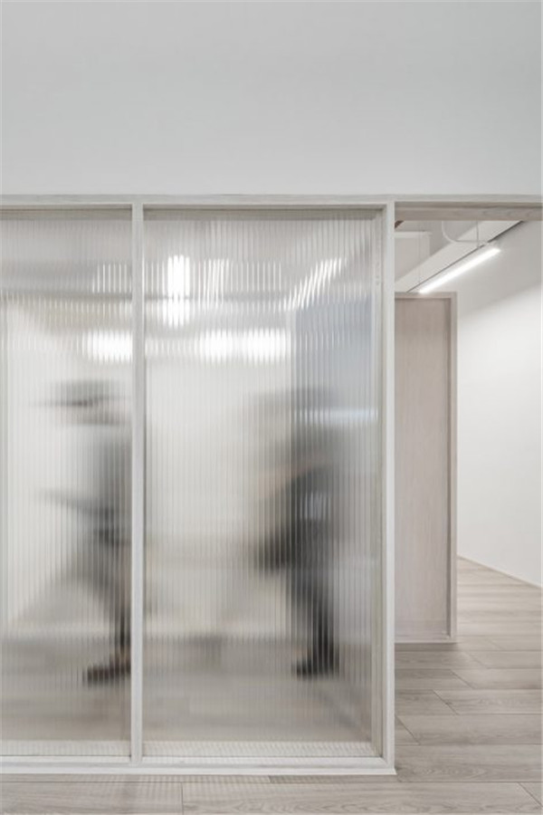 設(shè)計(jì)師在辦公室改造設(shè)計(jì)材料的選擇和項(xiàng)目的模塊化上放了不少心思,希望做到盡可能的少浪費(fèi)。固體和半透明的嵌板按照商業(yè)需要的尺寸被組裝起來(lái),空間利用率大大提升。